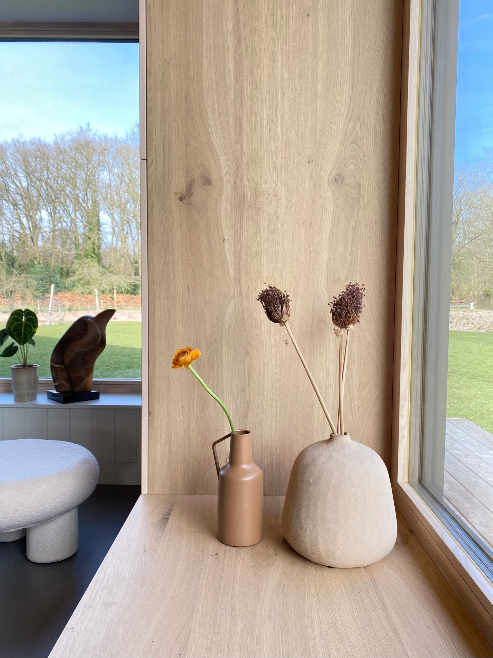Charlot en Wout lieten een prachtige vrijstaande woning bouwen. Maar wat te doen met het interieur? Ik was de gelukkige die ze mocht helpen met een interieurplan! Van indeling met kleurplan tot maatwerkkasten én alle nieuwe meubels en armaturen. Ik heb gebruik gemaakt van veel kleur en verschillende materialen om een gezellig en harmonieus geheel te krijgen. Best gelukt al zeg ik het zelf :-)